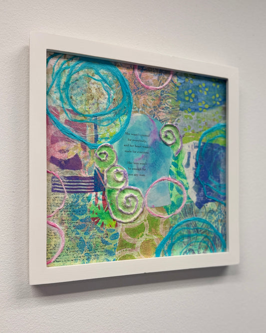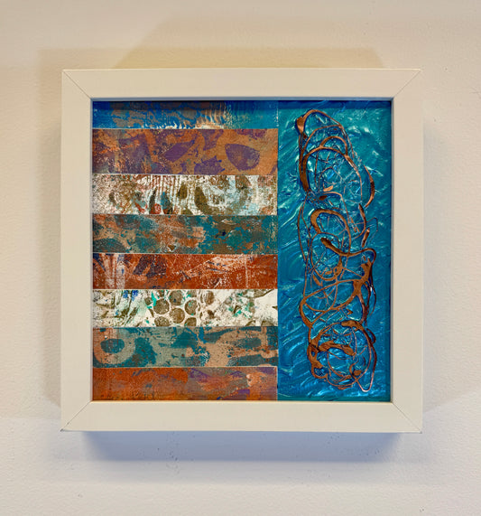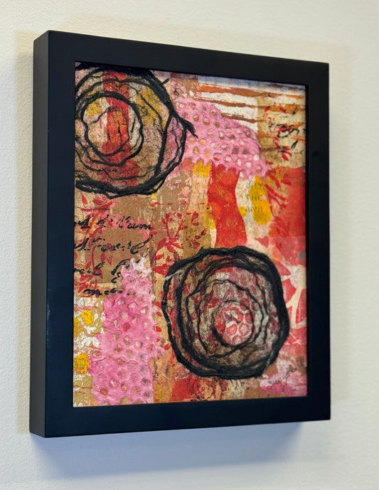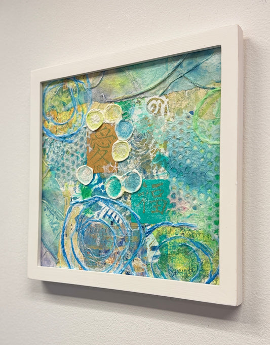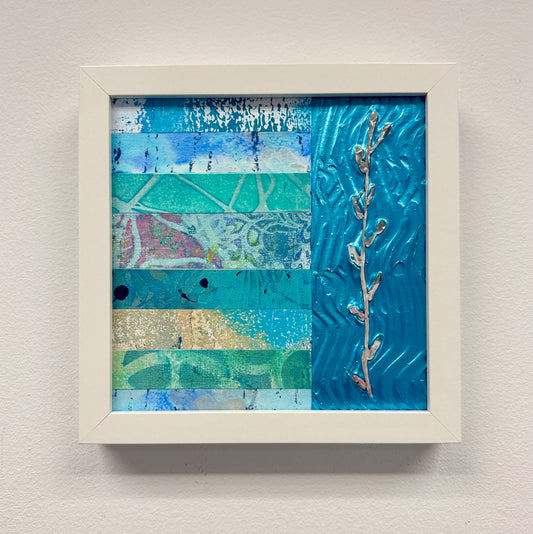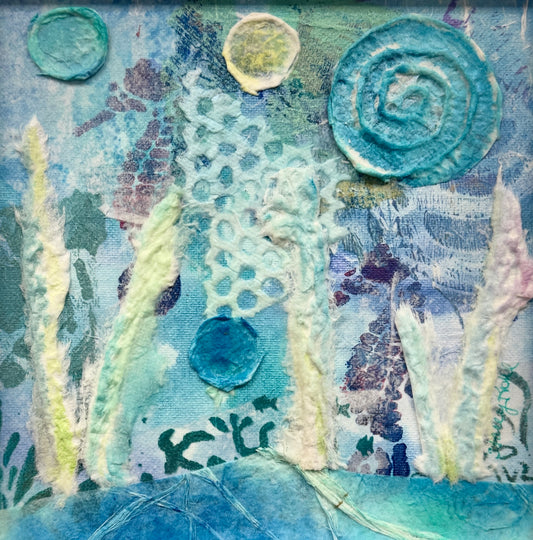 This Collection consists of art made from many different types of papers, inks, paints, and media displayed on different types of foundations. I make many of my own prints using gel printing or hand painting papers. My collages tell a story or share a feeling or inspiration.