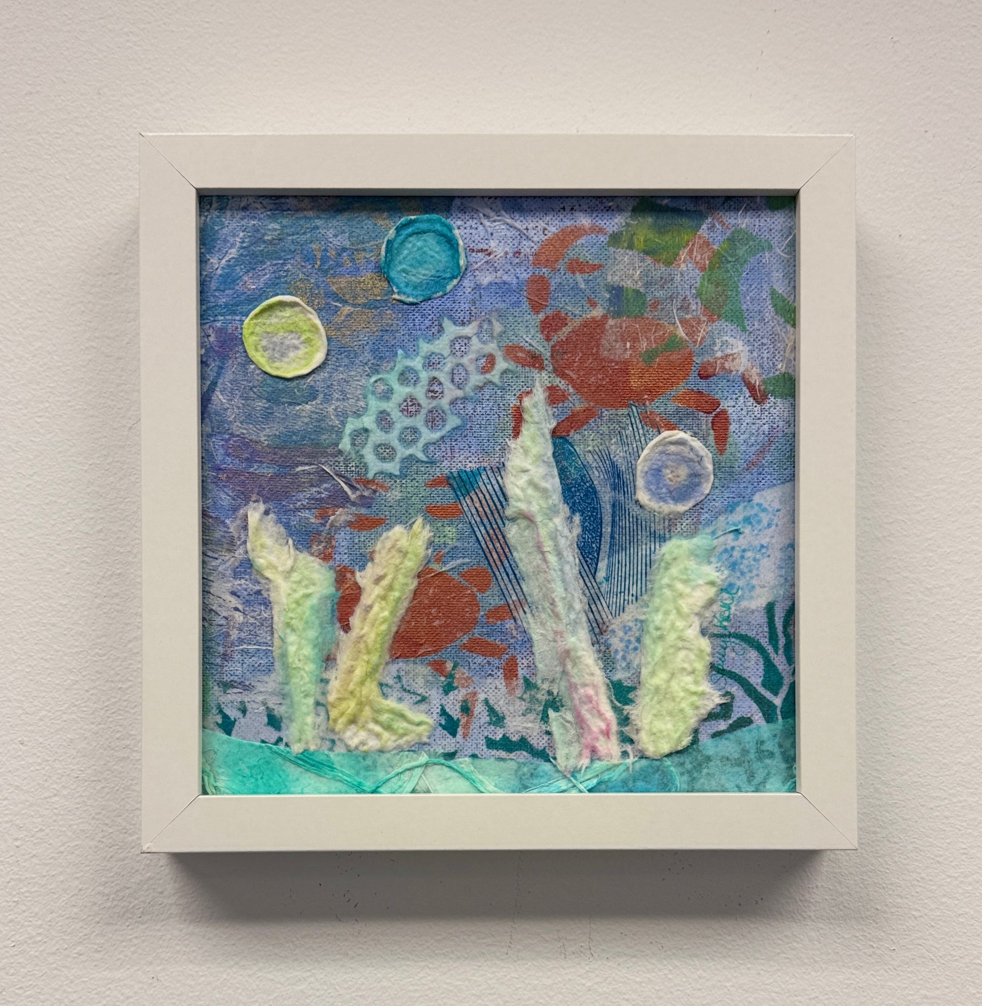 'Crabs' is an engaging mixed media artwork inspired by the underwater world. It’s a perfect addition to enhance a sea-themed bathroom, a child’s room, or any coastal-inspired space.