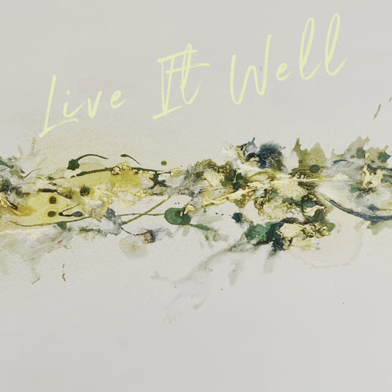 "Live it Well" is a fluid abstract acrylic art piece. This piece has several new techniques. I am using sprays and alcohol inks along with fluid acrylics. This piece is named after the song by Switchfoot.