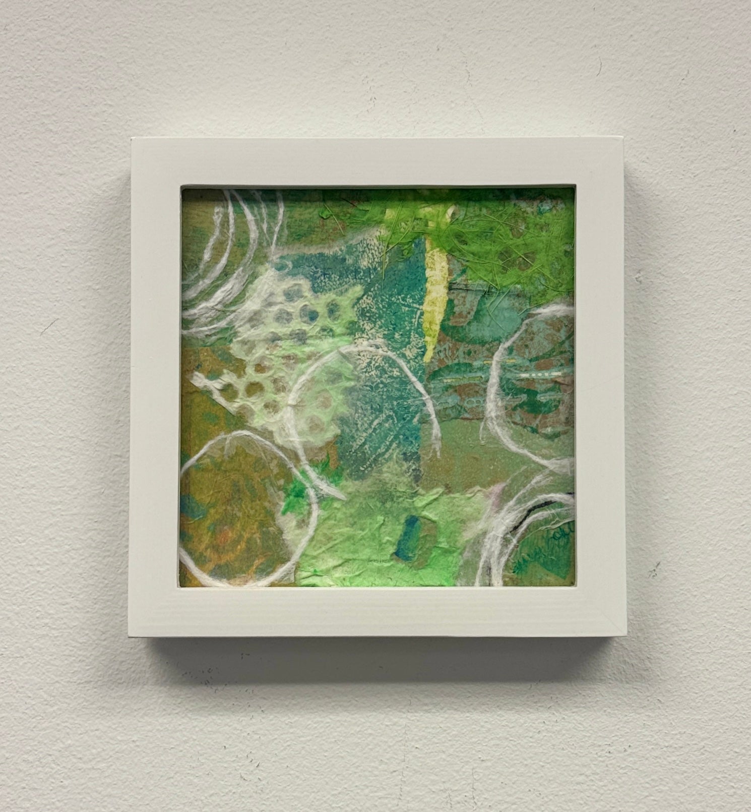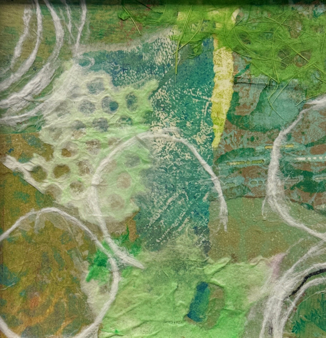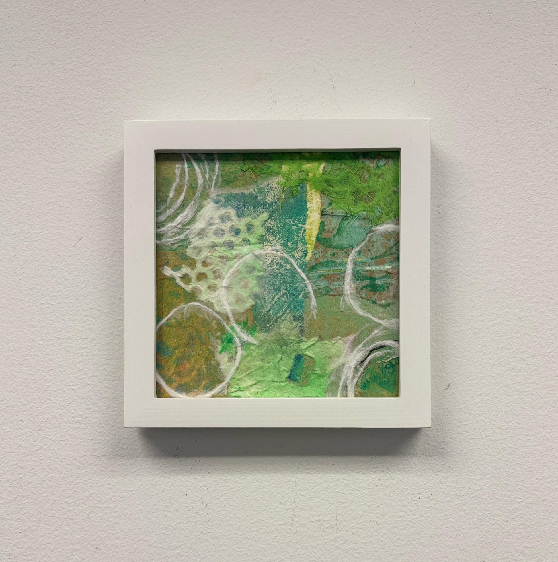 "Pretty Green" is a beautifully crafted mixed media art piece designed to bring life and vibrancy to your living or working space. Its rich textures and harmonious green tones make it an eye-catching accent, whether placed on a shelf or displayed on a wall. This piece not only enhances your décor but also creates a calming and inviting atmosphere, perfect for fostering relaxation and inspiration.